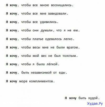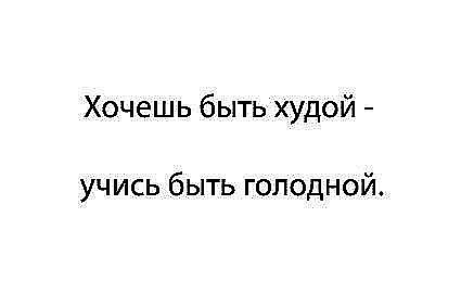 "Хочешь быть худой -учись быть голодной" - в корне не правильно. Что бы стройнеть не надо голодать, а надо правильно кушать и спортом заниматься