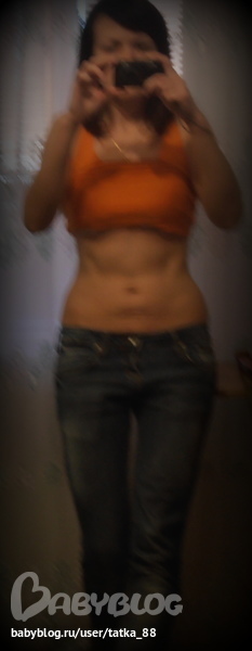 качаю пресс по видео "пресс за 8 минут" + переодически меняю некоторые упражнения, чтоб мышцы не привыкали.. качаю бока по видео Тани Майвэй... + ко всему, качаю ноги, отжимания от пола (пока могу лишь 10 раз).. приседания с весом (в качестве веса мой сынок - 12 кг :))