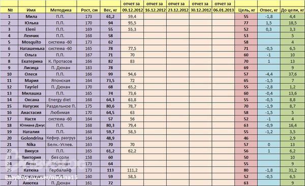 ДЕВОЧКИ, есть идеи относительно таблички! Как вы смотрите на вариант №1: чтобы пост с сегодняшней табличкой и был отчетным постом для воскресенья??? или №2: я выкладываю пост с заполненной табличкой в понедельник (как сегодня), мы все любуемся ею, завидуем друг другу))))), опоздавшие доотчитываются, а для очередного отчета я создам другой спец. пост - в субботу..., или №3: ваш вариант-предлагайте, не стесняйтесь!