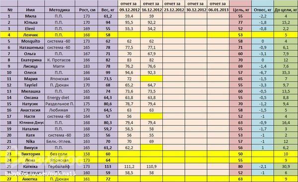 Отчеты-результаты о питании, о тренировкахВсем приветик, отчитываемся 23.12.2012 (в воскресенье) тут