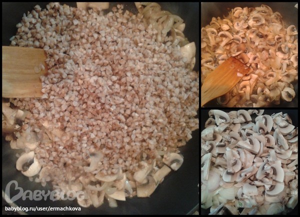 На обед, как ни странно, буду есть гречу с ГРИБАМИ! Не очень люблю грибы, но что то так захотелось мне...по дороге из садика заскочила в магазин,купила 300гр. жарю))