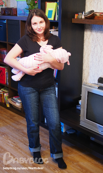 Ну и про мотивашки. Фото неглиже сейчас не буду выкладывать - они меня жутко демотивируют - припрятаны, чтобы потом в сравнении было... В одежде я выгляжу примерно так (не поверите - за 4,5 месяца ни нашлось ни одного фото без детеныша на руках):