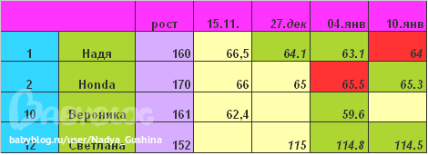 Отчеты-результаты о питании, о тренировкахВсе, кто давно не присылал данные о весе, были удалены!!! (не обижайтесь, все данные остались, если захотите вернуться, мы будем рады).
