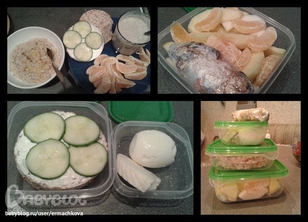 на перекус яблоки,мандарин и домашний батончик мюсли, на обед яичко, адыгейский сыр, хлебец с черникой, витаминный с сыром и огурчиком. Еще будет бутылочка с кефиром с клетчаткой. а уже ужин дома будет творог. и все
