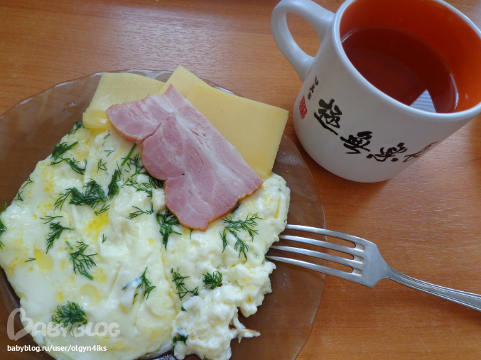 Дневники худеющихМой завтрак: омлет, сыр,грудинка, зеленый чай.