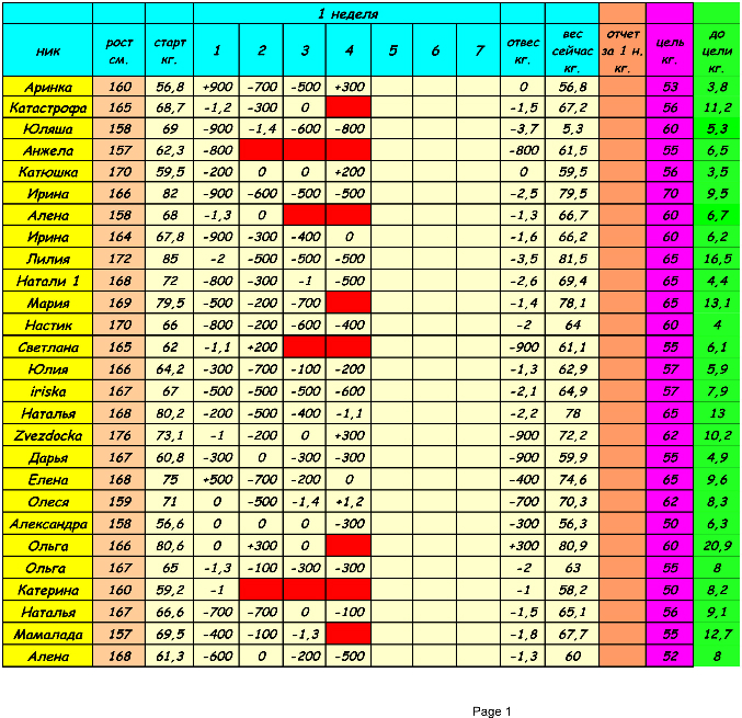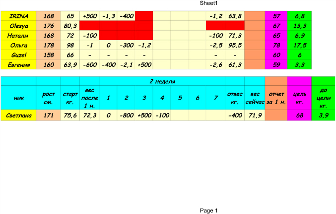 Отчеты-результаты о питании, о тренировкахОтчитываемся до 18:00, потом вставляю табличку!