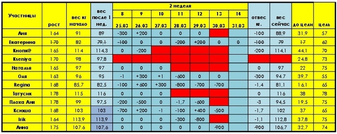 Девочки всем привет и удачного дня! У меня сегдня отвесик и мой вес 101,7 (-300) . Блин сегодня идем на др....буду есть только овощи...максимум греческий салатик наверно. Я сильная и всё выдержу.....пошла искать свою силу воли.....
