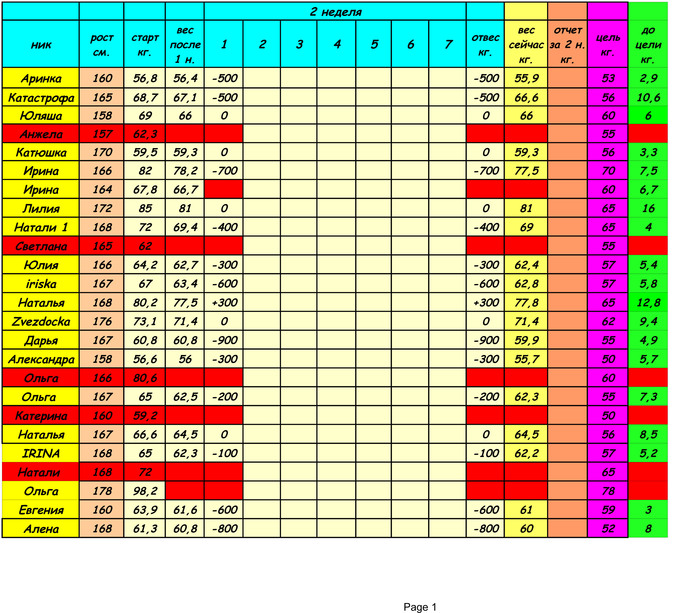 Отчеты-результаты о питании, о тренировкахОтчитываемся до 18:00, потом вставляю табличку!