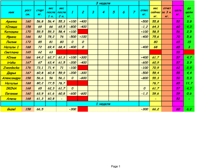 Отчеты-результаты о питании, о тренировкахОтчитываемся до 18:00, потом вставляю табличку!