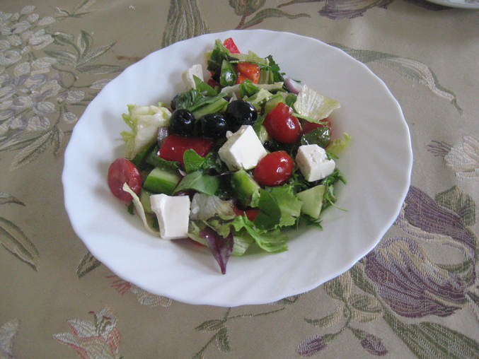 обед: греческий салат с оливковым маслом, пол грейпа