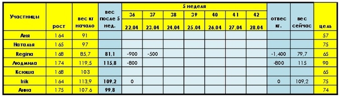 С добрым утречком девочки у меня все по нулям ( опять у меня ступор веса начался ну хорошо хоть не +)