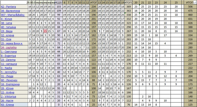 СПОРТ - 5/4/3/2/1 баллов (Занятия с Джиллиан или другим тренером, тренажерный зал или бег) оцениваем сами степень нагрузки и качество исполнения (на 5 баллов тренировки от 30 минут и более)