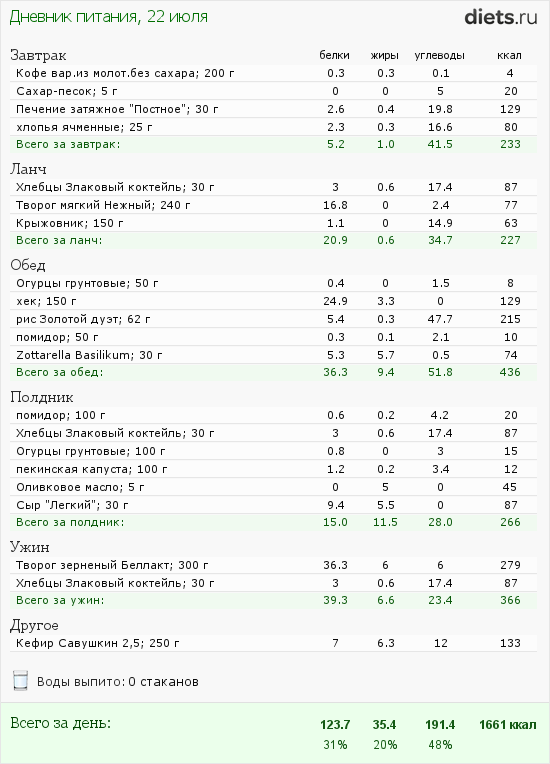 Пищевой дневник (22 июля)