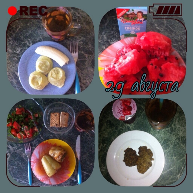 13.00- 2 фарш.перца, 2 печенья, черный чай) салат из помидоров и рукколы не влез( позже муж съел)