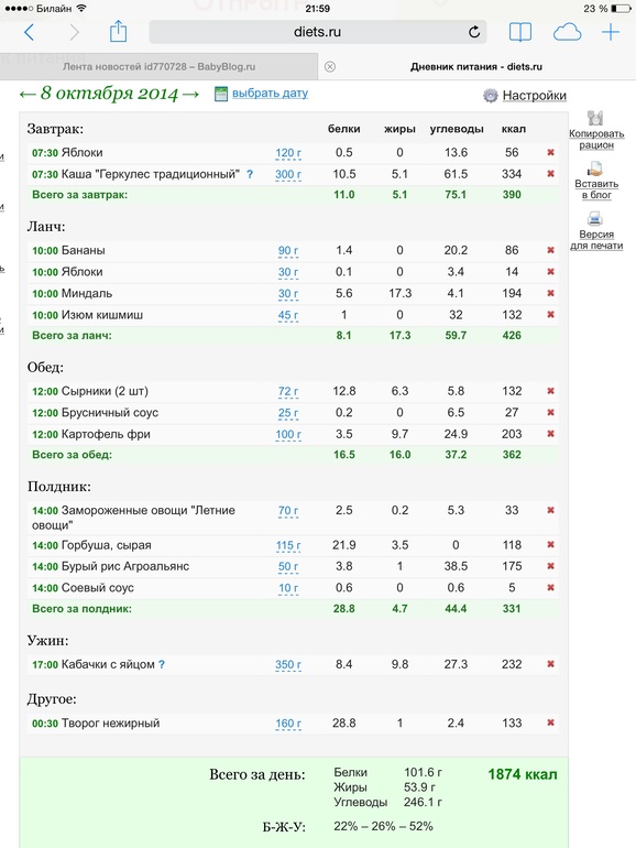 Дневники худеющихНакосячила с картошкой фри (все по чесноку, ничего не скрываю), но в дневной калораж вписалась - 1900ккал