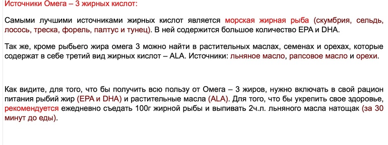 клаасное меню и классная статья, я к примеру знала что кислоты важны но никогда не вдавалась в подробности из-за своей лени )) Спасибки, жирной рыбкой, маслом и орехами непренебрегаем !, Теперь скажи как сырники готовила и можешь след. статью нарыть про обезжиренный творог, миф и реальность его пользы, усваивается ли кальций,содержит ли Д3 или мы тупо смотрим на кол-во белка.. мне интересно))Спасибки