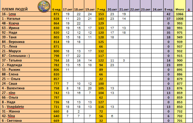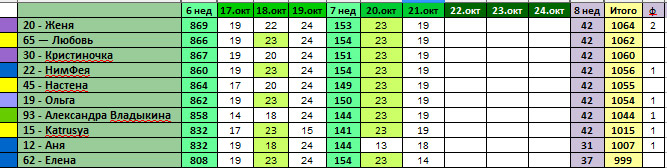 Уход - 8 есть прогресс - не заваливала этот сложный для меня пункт.. но всерно можно и больше...