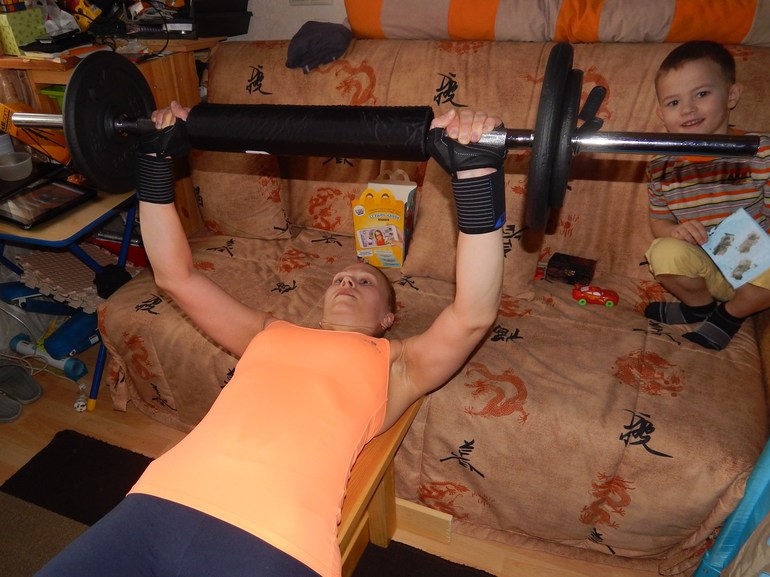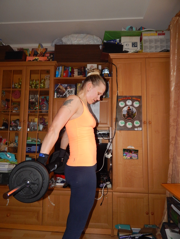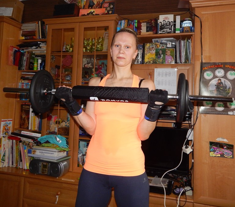 Помощники в нашем нелегком деле(косметические средства,тренажеры)Нет,не я вешу,хиии)))Вес штанги увеличила до 20кг))Вчера окончание зимы отметили поездкой в декатлон.Итог: маечка размера XS и блинчики по5 кг)))В связи с этим радостным событием публикую свои упражнения))