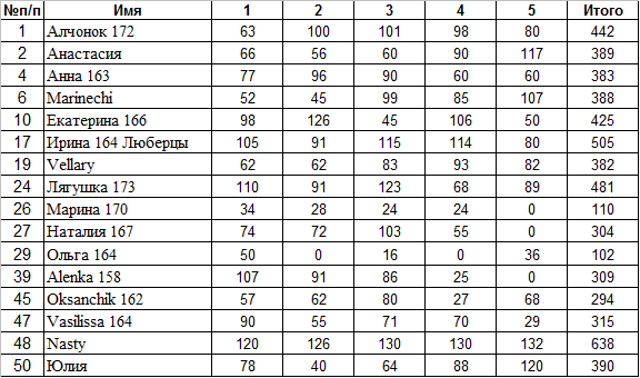 И конечно, девочки, поздравляю всех с результатами!