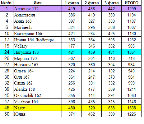 1. Итоговые баллы за 3 фазу!