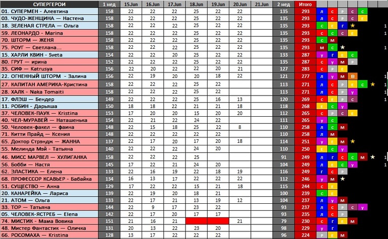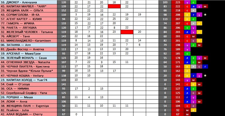 ТАБЛИЦА КРУТИЗНЫ СУПЕРГЕРОЕВ!!! если вы не обнаружили свои баллы, хотя вносили из в гугл=форму, или они не те что вы вносили - напишите Затане (Ann) в личку!!!![]()