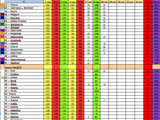 Вчера ПП12, Спорт 5, Джокер 4 (понравилось), Уход 1 Итого22