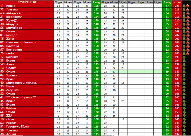 Номер 14. ПП 10 (-бжу), спорт 3, джокер 0 (задание не успела посмотреть, день был мегаактивный), уход 0. Итого 13.