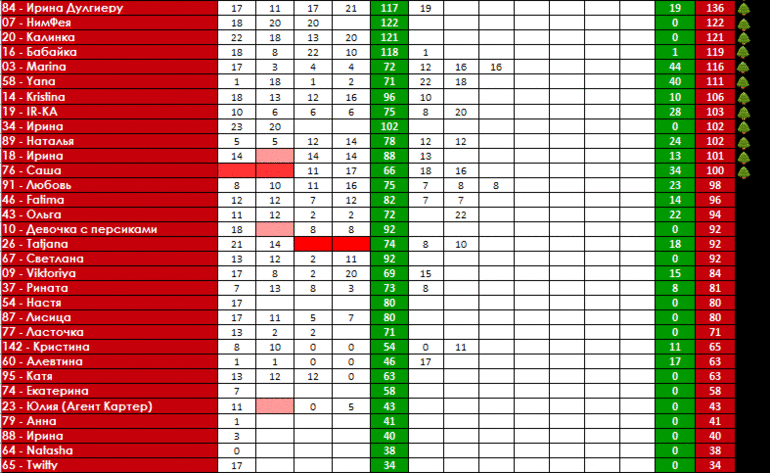 99-й. ПП - 12, спорт - 5, джокер -4, уход - 1. Итого 22