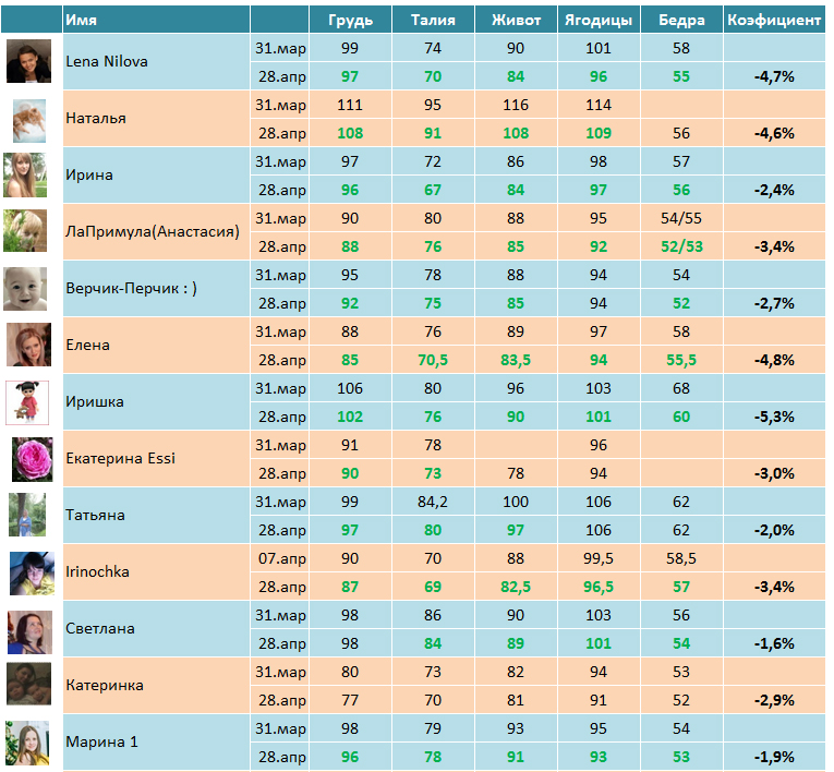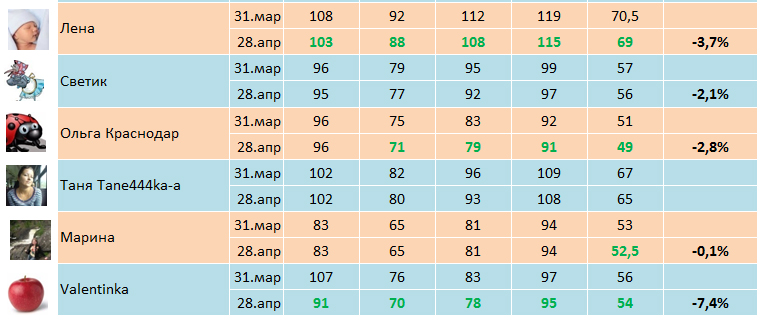 Наш безусловный герой Елена, которая избавилась от 3,5 кг (т.е. от 6.2% своего веса!)