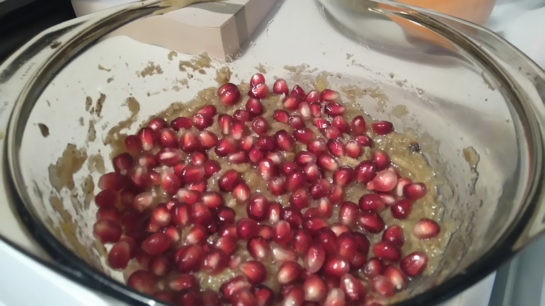 6. Перед подачей сверху высыпать гранатовые зернышки 1 граната (я половину съедаю в процессе =)