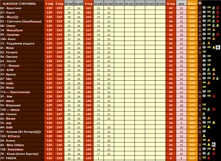 Нет сладкому - 5, 5/6 приемов пищи - 1, БЖУ -2, вода - 1, приготовление - 1, фильтр - 2