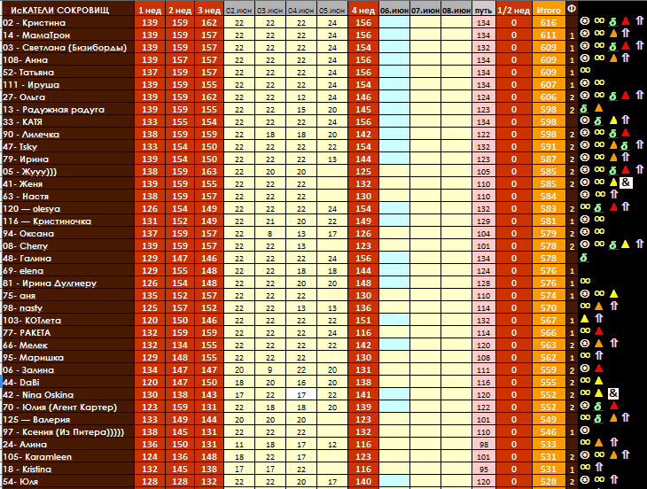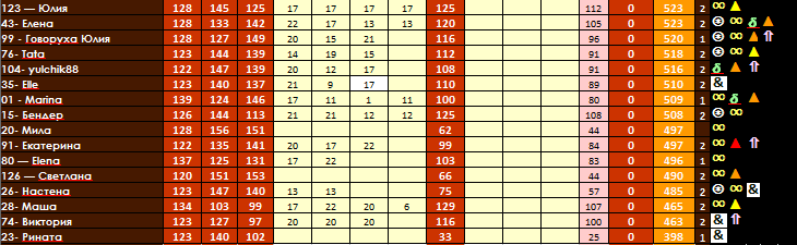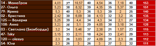 Все кто есть в этой табличке приплюсовывают сегодня себе +3 БОНУСНЫХ балла... а МамаТрои, Стрела и Ирина даже не 3, а все 5.... ибо ну очень круты...