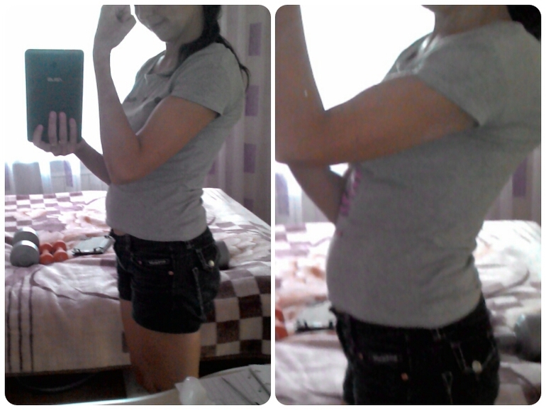 Не обошлось и без ошибок... особенно в питании. Полтора мечяца я занималась зря! На сильнейшем дефиците калорий (800 - 1000 кал в сутки)! Мышцы не росли' просто пребывали в тонусе и особого результата я не наблюдала. Я была одержима идеей убрать живот' который до сих пор' не смотря на мою худобу' торчит! Случайно встретив калькулятор расхода калорий' я забила свои данные и..... мне нужно кушать 2400 кал в сутки!!!!! Сейчас стараюсь' но физически столько съесть не могу... все равно регулярно не добираю...