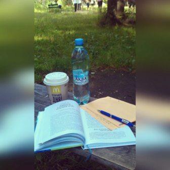 Прихожу в лес, сижу на лавочке пью кофе, читаю, записываю, размышляю и т.д. Это где-то час-1,5, потом пробежка, потом растяжка и какие-то еще упражнения по настроению, приседания например, пресс и т.п.