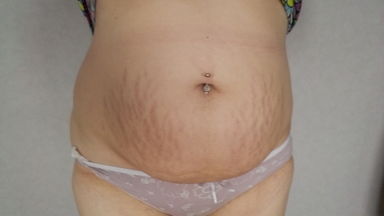 Если похудеете' живот уйдет' растяжки посветлеют со временем. И все будет хорошо. У вас еще не самый страшный живот! Вот когда растяжки выше пупка поднимаются' это да....