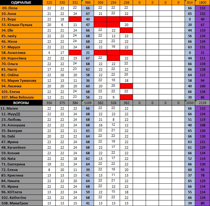 Ланистеры №76 ПП-12, спорт -5(ДМ), Джокер-4 (2,5,6,7,12,15,20,23,24,27,29,30), Уход -1 Итого 22