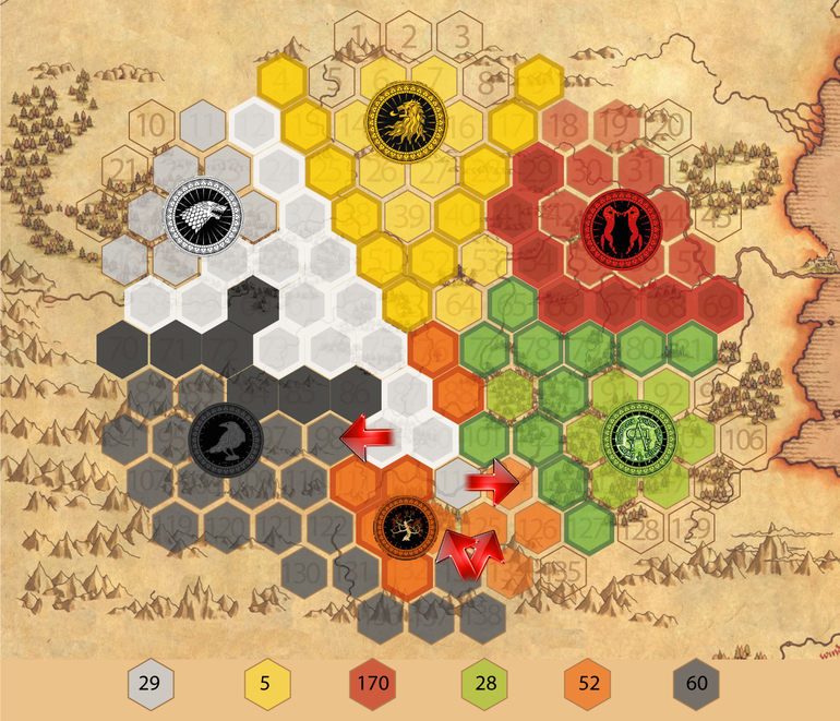 В остальном: ланистеры и безликие осваивают, дотракийцы, одичалые и вороны строятся, старки ломают.