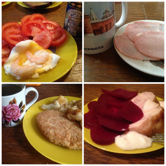 ужин - куриная ветчина, вареная свекла, хрен, цикорий
