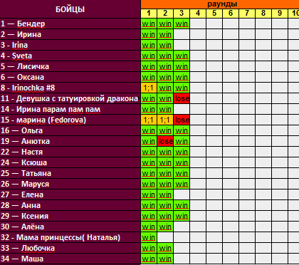 № 15 отчитываюсь, меня не много напрягает, в моей строчке красным, Lose?, я в накауте, но я же отчитываюсь, я же занимаюсь спортом каждый день, и сижу на ПП, можно сказать морю себя голодом.