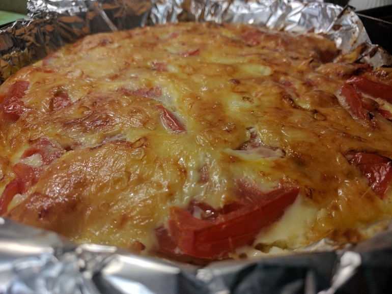 Брала на работу. Сверху положила три ломтика сыра и разогрела. Вполне сносно)