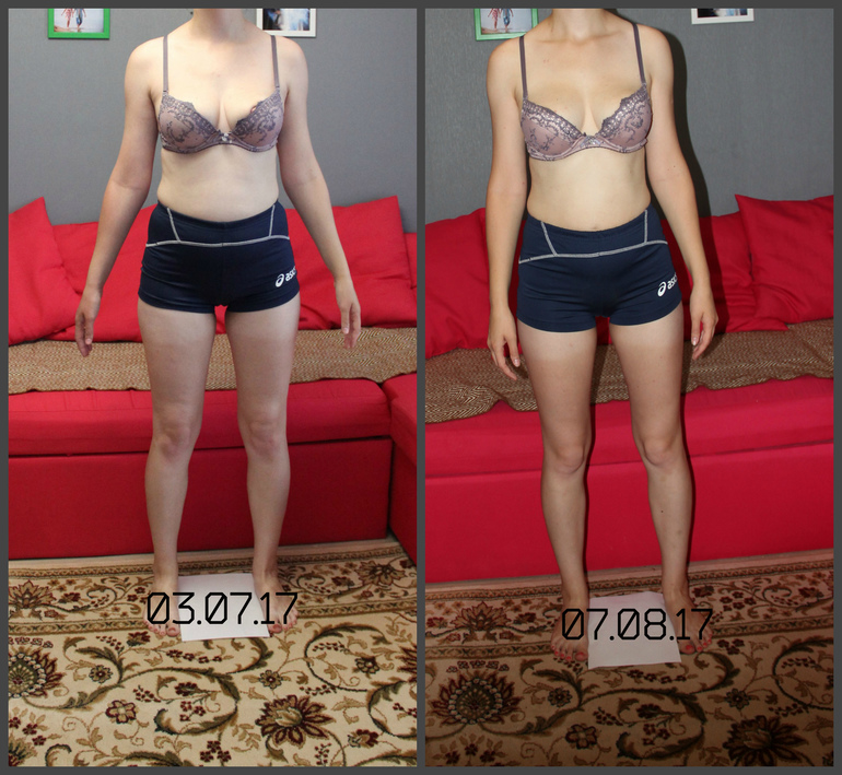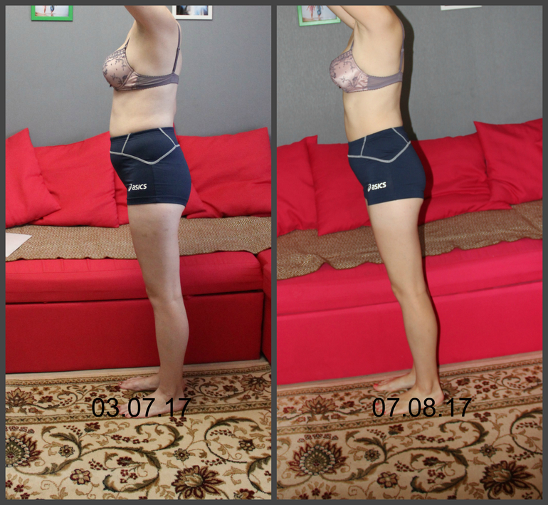 В начале июля начала участие в марафоне и были сделаны фото тела, ну и сегодня сфоткалась, извиняюсь, освещение другое и тень получилась, но думаю, что разница все равно заметна?