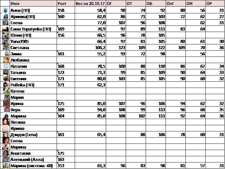 Завтраки были правильные, заливала кипятком геркулес, чай без сахара. 2 завтрак это 1 яйцо, кусочек сыра 20 грамм, кофе с молоком. обед гороховый суп с куриной грудкой без картошки, салат из капусты с морковью, свеклой , красным перцем и зеленью.Ужин: плов с куриной грудкой, чай и налопалась конфет....Пью воду, стараюсь 2 литра, но может и меньше получается. Сегодня все строго))) постараюсь не нарушать....Замеры ОГ 96, ОБ 112, ОТ 85, ОН 59, ОР 28. Рост 163. Вес 69,9.