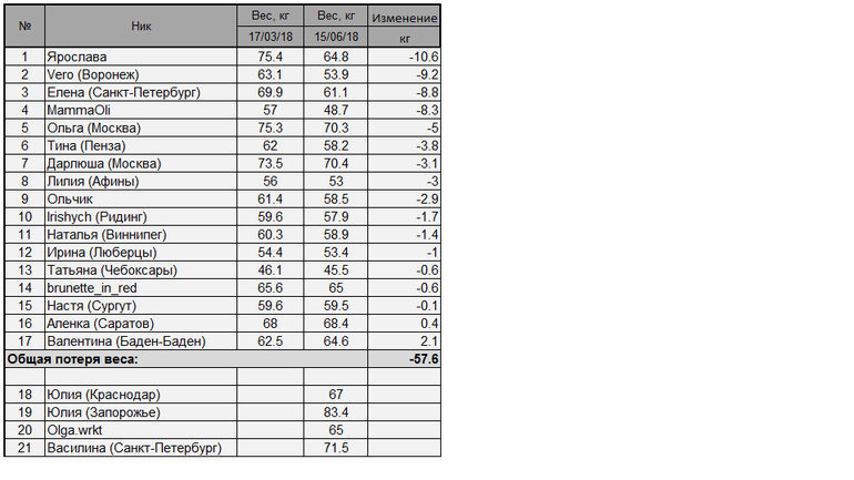 Очередное взвешивание - 30.06. Всем удачи, чудесной погоды, моря / дачи / новых впечатлений! Ваша Irishych