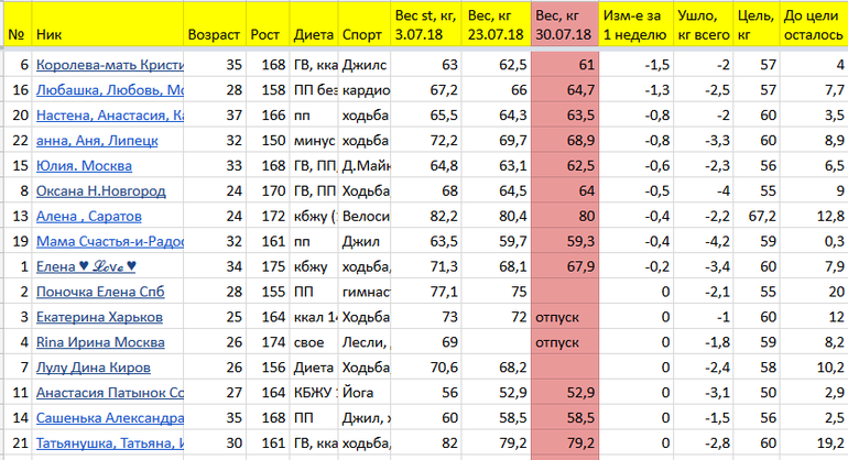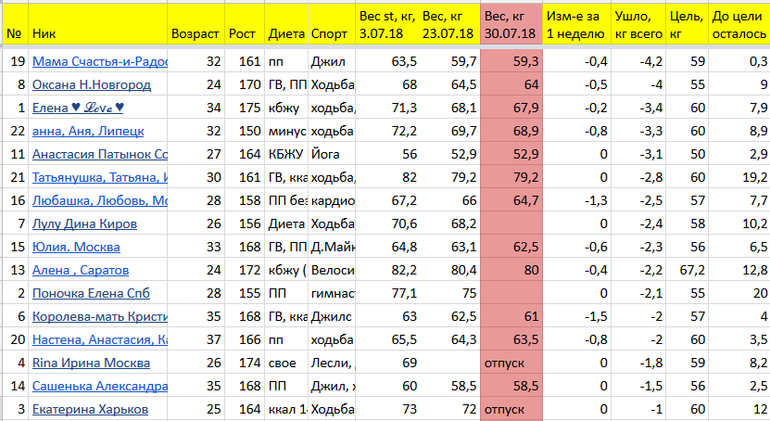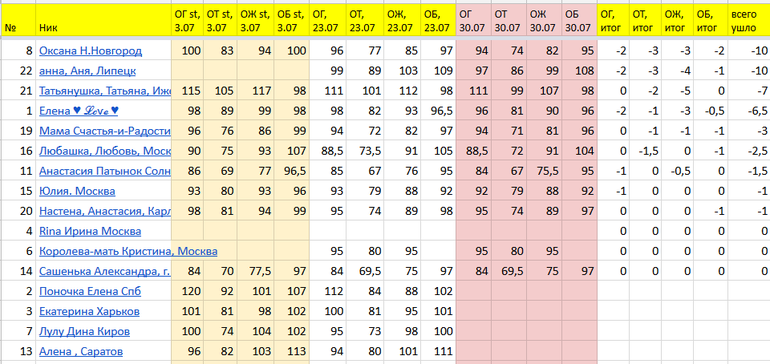Итого за неделю скинули 6,5 кг, всего за 4 недели 40,6 кг. Ушло за неделю всего 42,5 см. Девочки, мы молодцы, так держать! Пусть жир тает на глазах!!!