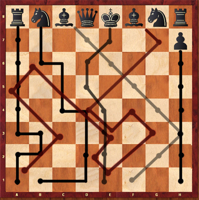 Каждая шахмата должна пройти путь от того места где она стоит до нижнего ряда доски... Ту клетку, на которой она стоит тоже надо выполнить. Каждая шахмата ходит так, как она умеет ходить в шахматах, но её маршрут иной прокладывает самостоятельно. Хотите шарахайтесь по доске как полоумные, хотите ломитесь кратчайшим... Если вы вновь попали на клетку на которой уже были - делайте её повторно и считайте её.