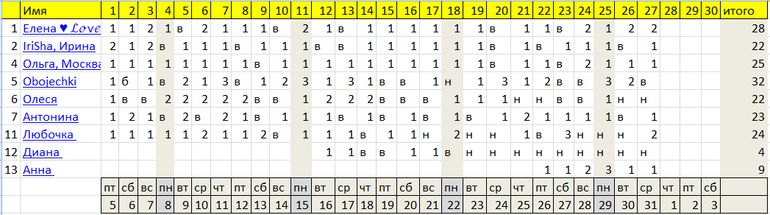 Количество подходов будем увеличивать каждые 4 дня- 1 день.