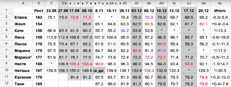 Из личного опыта: я худела через полгода после первых родов в два этапа, а сейчас начала худеть спустя 4 месяца после вторых родов ( в табличке я со *), моя диета никак не отразилась на количестве/качестве молока (сейчас ребенку 8.5 и до сих пор приходится ходить с прокладками для груди)))), старшего ребенка кормила до 1.10, младшего планирую так же.