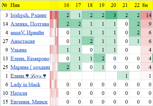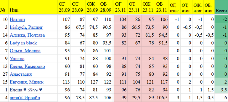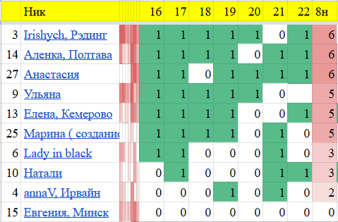 ТАБЛИЦАЛИДЕРЫ ПРОШЛОЙ НЕДЕЛИ