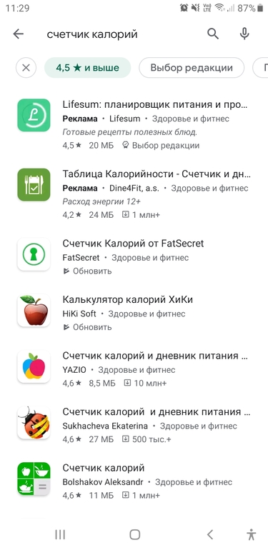По приложениям по калориям
