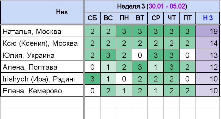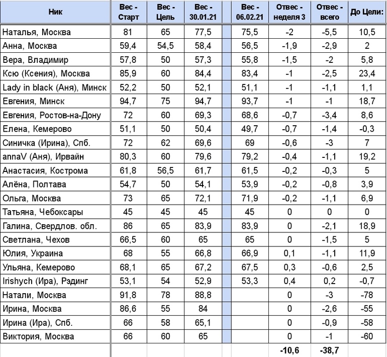 Лидеры по весу - Наташа, Аня, Вера, поздравляю!